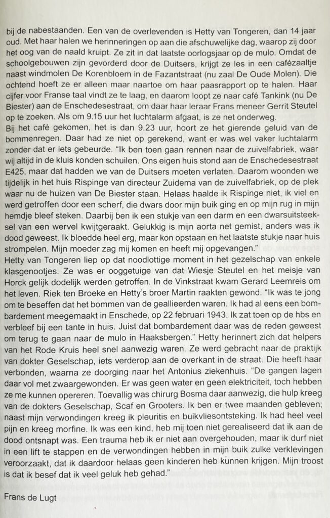 Lida bracht met haar man Bertus wapens en munitie weg op een boerenkar naar Enschede. Het geheel was ingepakt in een zeil en afgedekt met een flinke lading mest. Onderweg, net buiten Haaksbergen, werden ze aangehouden door twee Duitse soldaten. Die vroegen een lift richting Enschede. Tot verbazing van Bertus gaf Lida meteen toestemming. De soldaten legden zelf een zeil over de mest en reden mee tot Usselo…